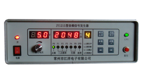 JY1215型音频信号发生器输出音频方波信号,不仅可作为普通信号发生器使用,并可直接同时驱动四路电磁蜂鸣器或压电蜂鸣器发音。信号幅度、频率范围、扫频速度等参数任意设置。并可选择输出信号为点频长声、点频间断、三点和扫频等状态。是蜂鸣器生产检测的必备设备。特别适合使用在工厂流水线上,对蜂鸣器发音进行人工检听。也可以使用在其它需要普通音频信号发生器的相关领域。
